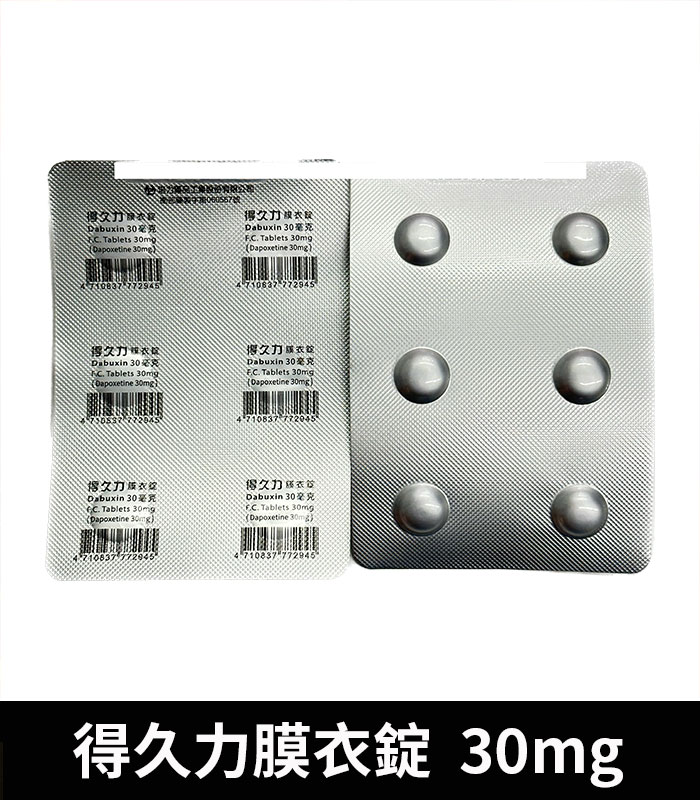 得久力膜衣錠 Dabuxin 30mg 是專為改善男性早洩(PE)問題設計的處方藥,其主要活性成分 Dapoxetine 為國際認可的延遲射精治療成分,與知名藥物必利勁成分相同。每顆 30mg 的劑量能夠幫助男性有效延長性愛時間,提升性生活質量與自信心。該藥物可減少射精過快帶來的心理壓力,讓您重拾性生活的控制感。經過多項臨床試驗證實,得久力膜衣錠不僅效果顯著,而且副作用較輕微,適合絕大多數健康男性使用。